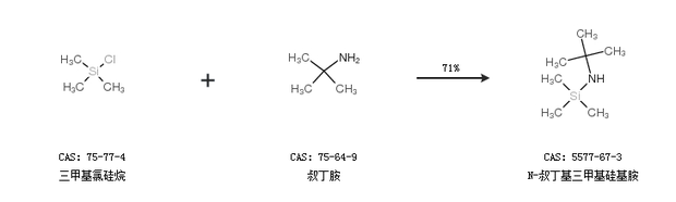 1.通過(guò)三甲基氯硅烷和叔丁胺合成N-叔丁基三甲基硅基胺,收率約71%;