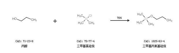1.通過丙醇和三甲基氯硅烷合成三甲基丙氧基硅烷,收率約76%;