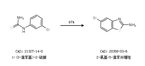 1.通過1-(3-溴苯基)-2-硫脲合成2-氨基-5-溴苯并噻唑,收率約67%;