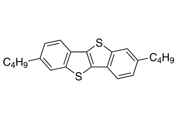 BTBT化合物具有兩個苯環(huán)和一個噻吩環(huán)的結(jié)構(gòu),屬于二苯并二苯稠合梯型π-共軛化合物。其化學(xué)結(jié)構(gòu)使其在電子傳導(dǎo)方面表現(xiàn)出優(yōu)異的性能,具有高電子遷移率和良好的熱穩(wěn)定性。BTBT的HOMO能級較低(約-5.88 eV),這使得基于BTBT的有機(jī)薄膜晶體管(OTFTs)器件具有較大的閾值電壓。