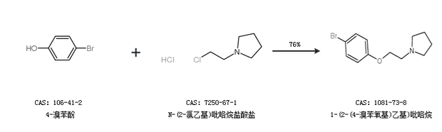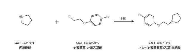 2.通過四氫吡咯和4-溴苯基 2-氯乙基醚合成1-(2-(4-溴苯氧基)乙基)吡咯烷,收率約88%;