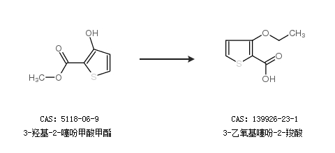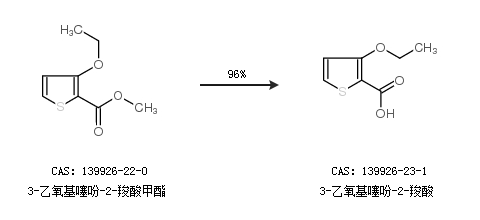 1.通過3-乙氧基噻吩-2-羧酸甲酯合成3-乙氧基噻吩-2-羧酸,收率約96%;