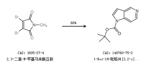 2.通過(guò)2,3-二溴-N-甲基馬來(lái)酰亞胺合成1-Boc-1H-吡咯并[3,2-c]吡啶,收率約68%;