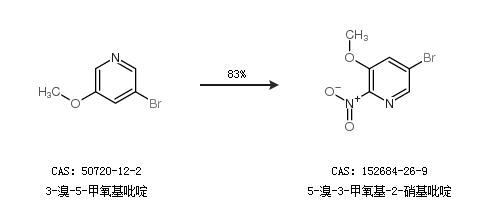 1.通過3-溴-5-甲氧基吡啶合成5-溴-3-甲氧基-2-硝基吡啶,收率約83%;
