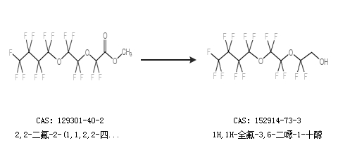 1.通過2,2-二氟-2-(1,1,2,2-四氟-2-(全氟丁氧基)乙氧基)乙酸甲酯合成1H,1H-全氟-3,6-二噁-1-十醇