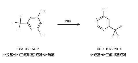 1.通過4-羥基-6-(三氟甲基)嘧啶-2-硫醇合成4-羥基-6-三氟甲基嘧啶,收率約68%;