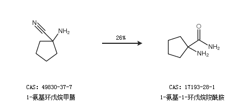 1.通過(guò)1-氨基環(huán)戊烷甲腈合成1-氨基-1-環(huán)戊烷羧酰胺,收率約26%;