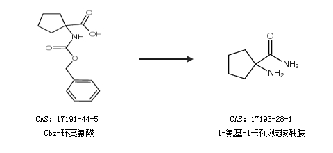 2.通過(guò)Cbz-環(huán)亮氨酸合成1-氨基-1-環(huán)戊烷羧酰胺