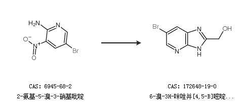 1.通過2-氨基-5-溴-3-硝基吡啶合成6-溴-3H-咪唑并[4,5-B]嘧啶-2甲醇