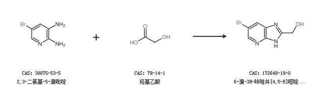 2.通過2,3-二氨基-5-溴吡啶和羥基乙酸合成6-溴-3H-咪唑并[4,5-B]嘧啶-2甲醇