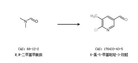 2.通過N,N-二甲基甲酰胺合成6-氯-5-甲基吡啶-3-羧醛