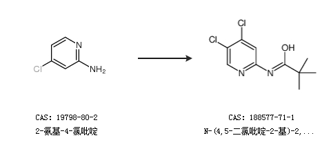 英文別名 N-(4,5-dichloropyridin-2-yl)pivalamide;N-(4,5-dichloro-2-pyridinyl)-2,2-dimethylpropanamide;Propanamide,N-(4,5-dichloro-2-pyridinyl)-2,2-dimethyl;4,5-Dichloro-2-(trimethylacetamido)pyridine;2-trimethylacetamido-4,5-chloro-pyridine;