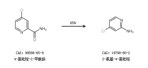 2.通過4-氯吡啶-2-甲酰胺合成2-氨基-4-氯吡啶,收率約65%;