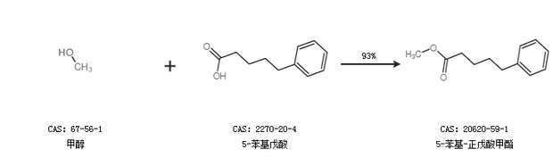 1.通過甲醇和5-苯基戊酸合成5-苯基-正戊酸甲酯,收率約93%;