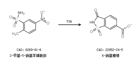 1.通過2-甲基-5-硝基苯磺酰胺合成6-硝基糖精,收率約73%;