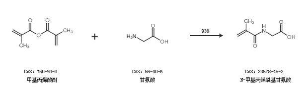 1.通過甲基丙烯酸酐和甘氨酸合成N-甲基丙烯酰基甘氨酸,收率約93%;