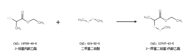 1.通過2-巰基丙酸乙酯和二甲基二硫醚合成2-(甲基二硫基)丙酸乙酯