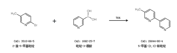 1.通過2-溴-5-甲基吡啶和吡啶-3-硼酸合成5-甲基-[2,3]-聯吡啶,收率約76%;