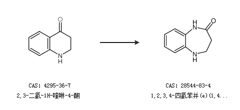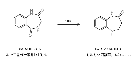 1.通過3,4-二氫-1H-苯并[e][1,4]二氮雜卓-2,5-二酮合成1,2,3,4-四氫苯并(e)(1,4)二氮雜革-5-酮,收率約38%;