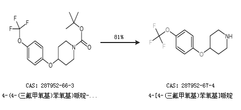 1.通過4-(4-(三氟甲氧基)苯氧基)哌啶-1-羧酸叔丁酯合成4-[4-(三氟甲氧基)苯氧基]哌啶,收率約81%;