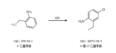 1.通過2-乙基苯胺合成4-氯-2-乙基苯胺,收率約42%;