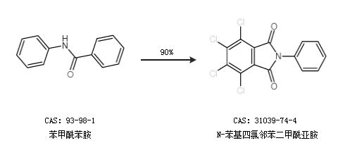 2.通過苯甲酰苯胺合成N-苯基四氯鄰苯二甲酰亞胺,收率約90%;