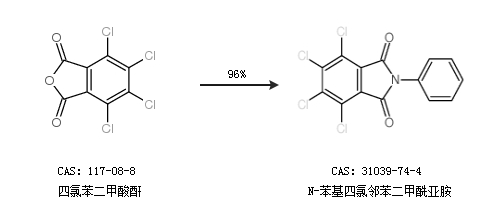 1.通過四氯苯二甲酸酐合成N-苯基四氯鄰苯二甲酰亞胺,收率約96%;