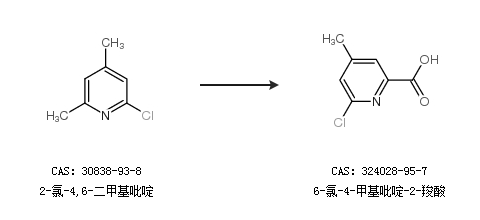 1.通過(guò)2-氯-4,6-二甲基吡啶合成6-氯-4-甲基吡啶-2-羧酸
