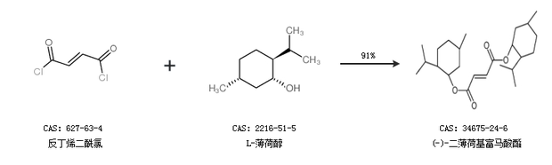 1.通過(guò)反丁烯二酰氯和L-薄荷醇合成(-)-二薄荷基富馬酸酯,收率約91%;