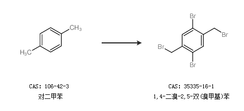 1.通過對二甲苯合成1,4-二溴-2,5-雙(溴甲基)苯