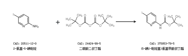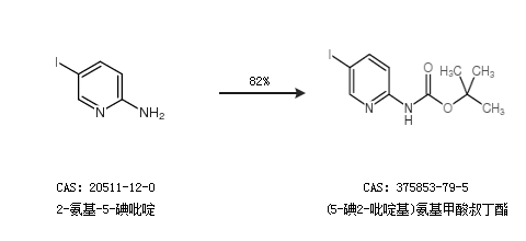 1.通過(guò)2-氨基-5-碘吡啶合成(5-碘2-吡啶基)氨基甲酸叔丁酯,收率約82%;