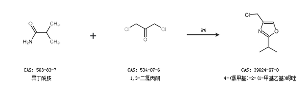 1.通過異丁酰胺和1,3-二氯丙酮合成4-(氯甲基)-2-(1-甲基乙基)噁唑,收率約6%;