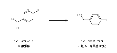 1.通過(guò)6-氟煙酸合成2-氟-5-(羥甲基)吡啶
