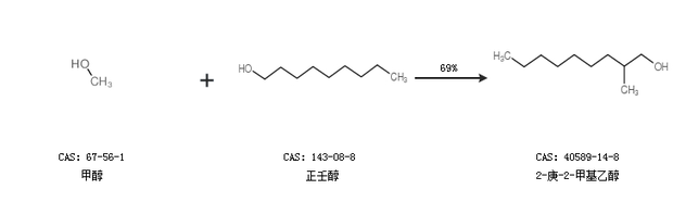1.通過甲醇和正壬醇合成2-庚-2-甲基乙醇,收率約69%;