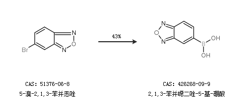 1.通過5-溴-2,1,3-苯并惡唑合成2,1,3-苯并噁二唑-5-基-硼酸,收率約43%;