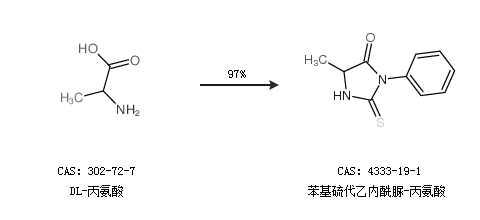 1.通過DL-丙氨酸合成苯基硫代乙內酰脲-丙氨酸,收率約97%;
