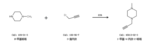 1.通過N-甲基哌嗪和3-溴丙炔合成1-甲基-4-丙炔-2-哌嗪,收率約83%;