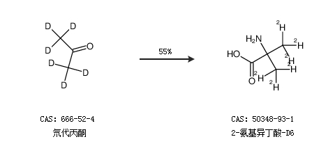 1.通過氘代丙酮合成2-氨基異丁酸-D6,收率約55%;