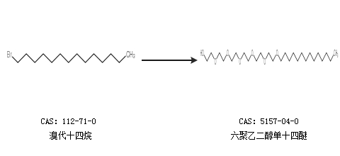 1.通過溴代十四烷合成六聚乙二醇單十四醚