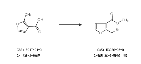 1.通過2-甲基-3-糠酸合成2-溴甲基-3-糠酸甲酯