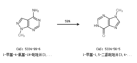 2.通過1-甲基-4-氨基-1H-吡唑并[3,4-D]嘧啶合成1-甲基-1,5-二氫吡唑并[3,4-D]嘧啶-4-酮,收率約59%;