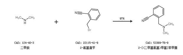 1.通過二甲胺和2-氰基溴芐合成2-[(二甲基氨基)甲基]苯甲腈,收率約97%;