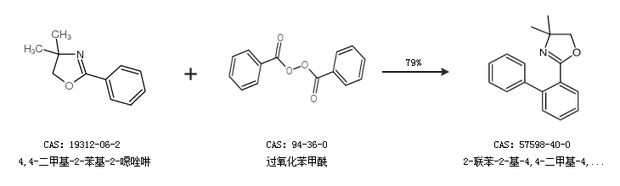 1.通過4,4-二甲基-2-苯基-2-噁唑啉和過氧化苯甲酰合成2-聯苯-2-基-4,4-二甲基-4,5-二氫噁唑,收率約79%;