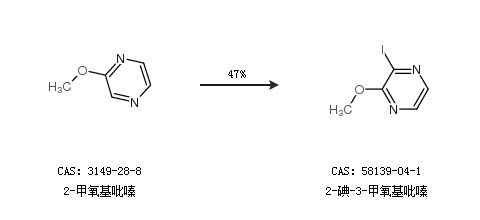 1.通過2-甲氧基吡嗪合成2-碘-3-甲氧基吡嗪,收率約47%;