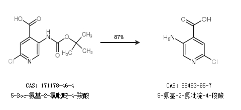 1.通過5-Boc-氨基-2-氯吡啶-4-羧酸合成5-氨基-2-氯吡啶-4-羧酸,收率約87%;
