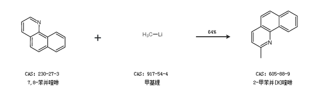 1.通過7,8-苯并喹啉和甲基鋰合成2-甲苯并[H]喹啉,收率約64%;