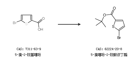 1.通過5-溴-2-羧基噻吩合成5-溴噻吩-2-羧酸叔丁酯