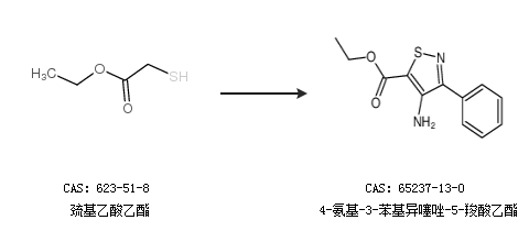 1.通過巰基乙酸乙酯合成4-氨基-3-苯基異噻唑-5-羧酸乙酯
