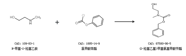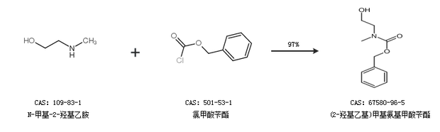 1.通過N-甲基-2-羥基乙胺和氯甲酸芐酯合成(2-羥基乙基)甲基氨基甲酸芐酯,收率約97%;