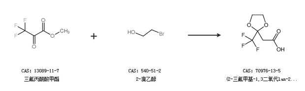 1.通過三氟丙酮酸甲酯和2-溴乙醇合成(2-三氟甲基-1,3二氧代lan-2-基)-乙酸